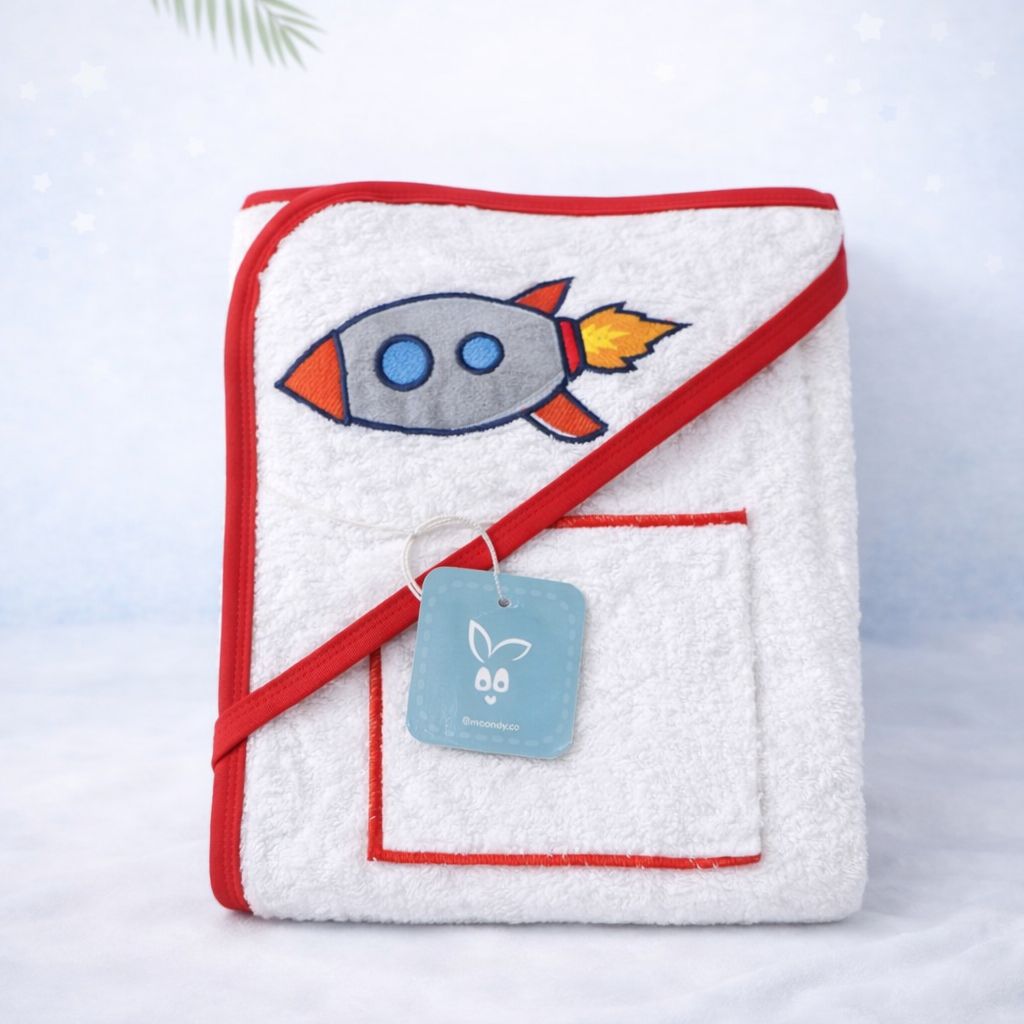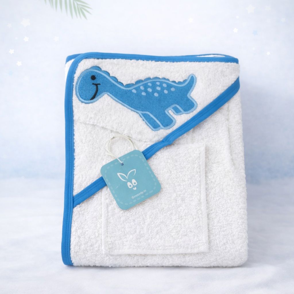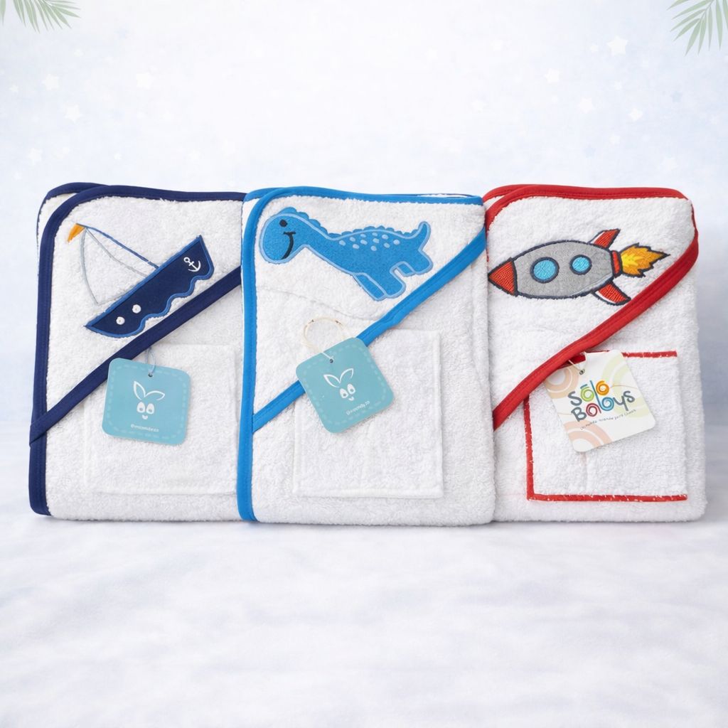 Toalla suave y absorbente para bebé. Diseñada con bordados tiernos y materiales de alta calidad para brindar comodidad y cuidado después del baño.